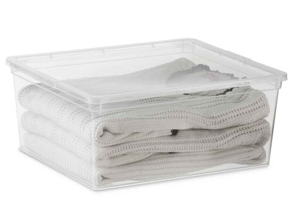 Plastový úložný box C Box, veľ. L s vekom, transparentný, 27 l