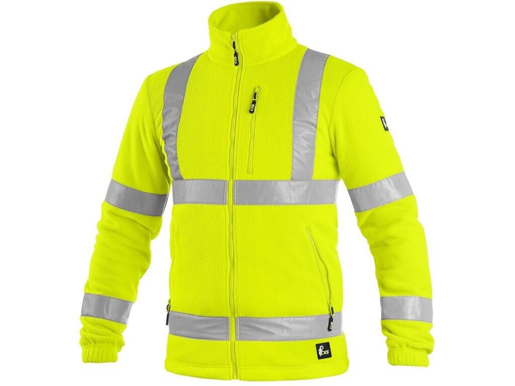 Pánska výstražná fleecová bunda s reflexnými pruhmi. Rukávy do gumy, bočné aj náprsné vrecká na zips, sťahovanie v dolnom okraji, podšívka zo sieťoviny. Odporúčané použitie: stavebníctvo, cestári, vodiči, letecká a lodná doprava, logistika, vodiči kamiónov, polícia, záchranári.Dodatočné parametre