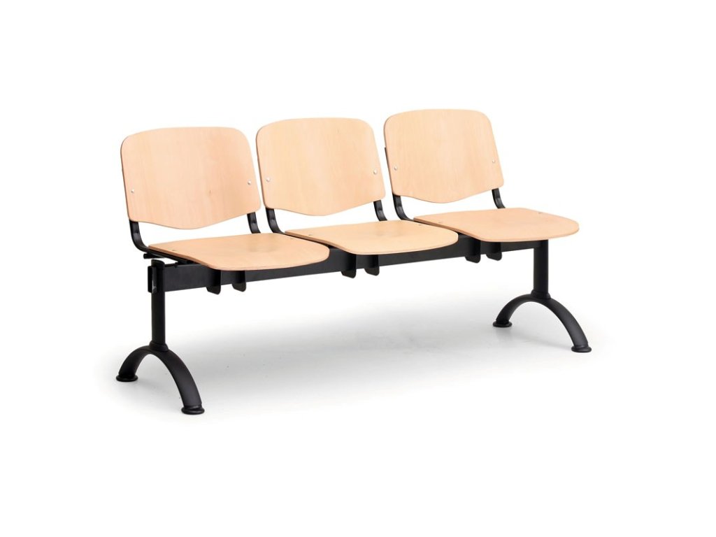 Vhodné do čekáren, veřejných prostor, ordinací apod. Třímístný modul. Podnože upraveny černým práškovým lakem. sedák i opěrák z lakované osmivrstvé bukové překližky tloušťky 10 mm. Plastové díly z černého elastického plastu. Ke krajním sedákům je možno domontovat područky. Dodávány v rozloženém stavu s montážním materiálem a návodem, jednoduchá montáž. Rozměry (delka x hloubka x výška): 1 500 x 400 x 720 mmCharakteristika: |