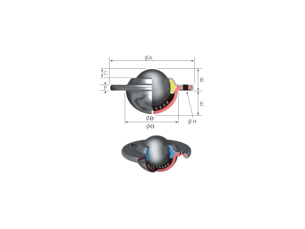 jednotka | počet děr | Ø koule (mm) | hmotnost (g) | Ø A | B | Ø D | E | F | Ø G | Ø H | Ø O | Maximální zatížení koulí nahoru/dolů kg | |