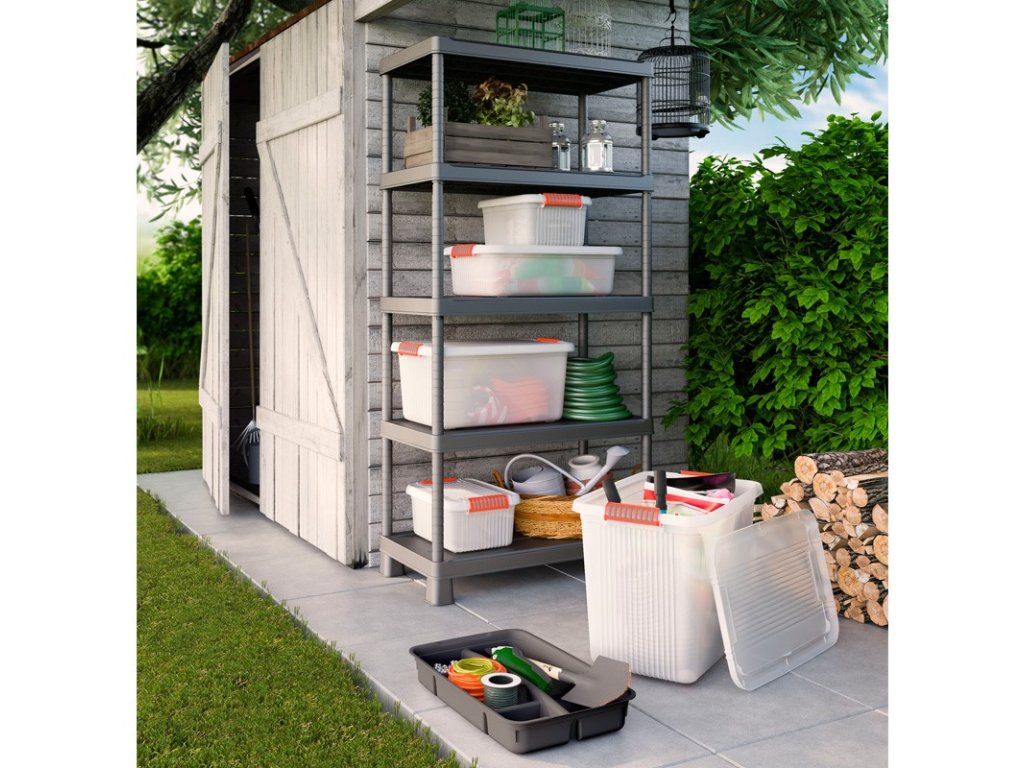 K Latch box XXL je odolný úložný box s klipovým zatváraním, ideálny pre domácnosti, dielne i garáže. Skvele sa hodí na skladovanie záhradného náradia, chémie, hračiek alebo dokonca potravín – vďaka atestu na potraviny. Vysoká odolnosť voči teplotám, robustná konštrukcia a moderný dizajn robia z tohto boxu praktického a dlhodobého pomocníka.