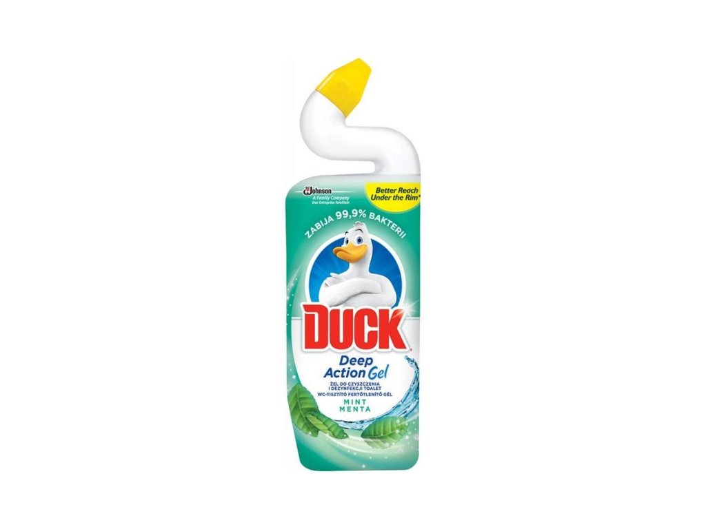 Duck WC tekutý čistič so sviežou vôňou. Duck tekutý čistič so sviežou vôňou, prípravok vyčistí WC misu, odstráni vodný kameň a nečistoty, eliminuje zápach, osvieži. Jedinečne zakrivené hrdlo fľaše ľahko dosiahne pod obrubu WC misy, kde sa najviac vyskytujú usadeniny. Zanecháva dlhotrvajúcu vôňu.Dodatočné parametre
