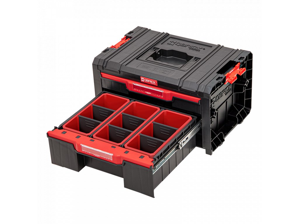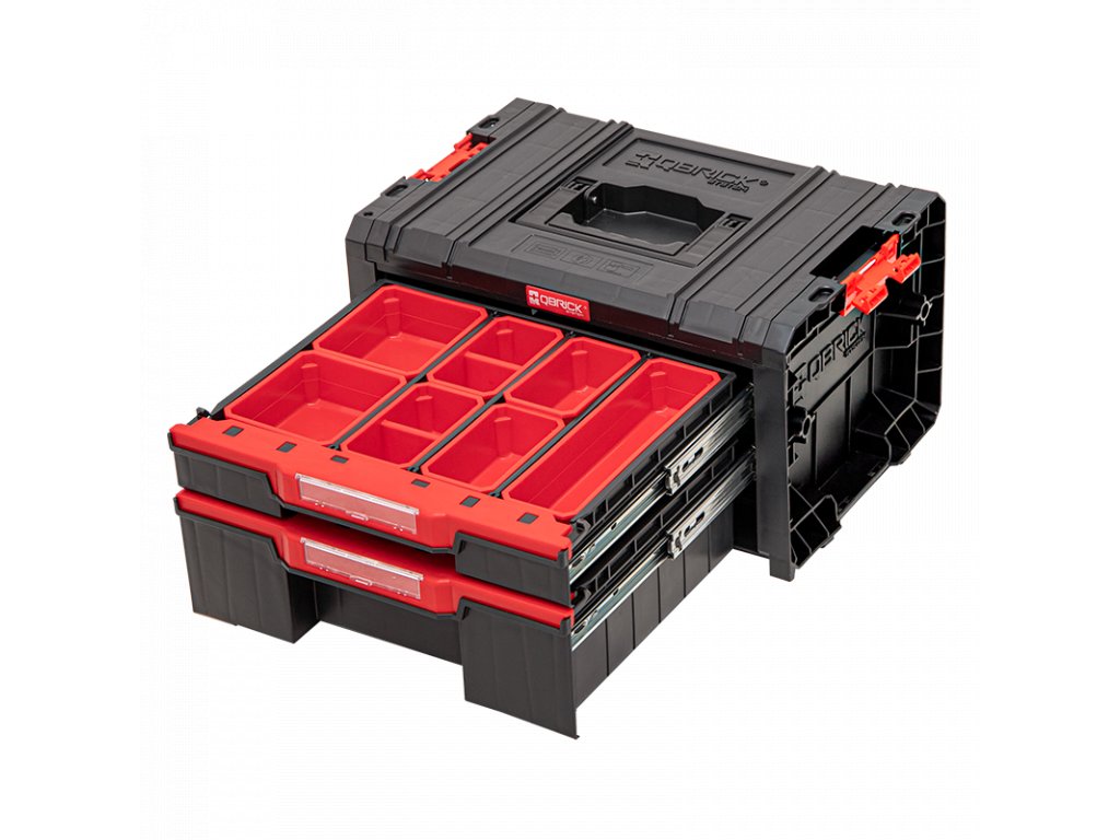 Qbrick System PRO Drawer 2 Toolbox 2.0 Expert je priestranný, modulárny box vybavený dvomi výsuvnými zásuvkami na kovových vodidlách. Tlačidlo v zásuvke poskytuje ľahký prístup k ich obsahu, ale aj blokuje samovoľné otvorenie zásuvky. Zásuvky umožňujú organizovať pozdĺžne aj drobné dielenské komponenty, skrutky, tesnenia a ďalšie predmety. Verzia zásuviek Expert je vybavená nastaviteľnými prepážkami a kontajnermi, ktoré umožňujú organizovať pozdĺžne aj drobné dielenské príslušenstvo.