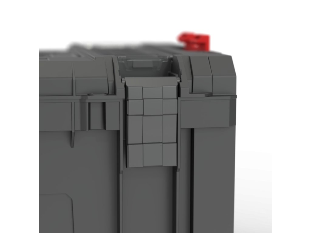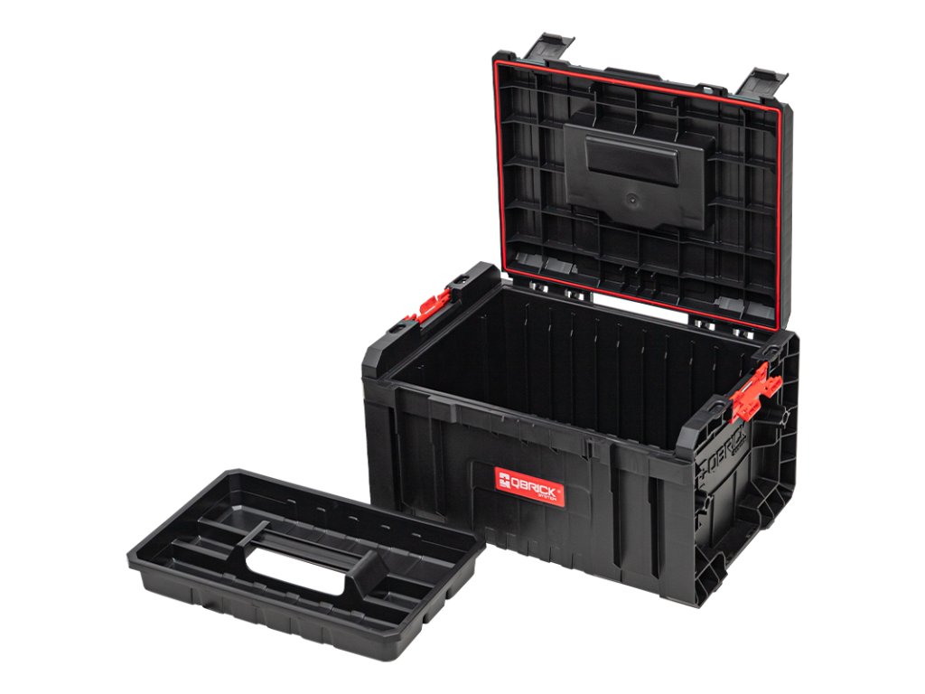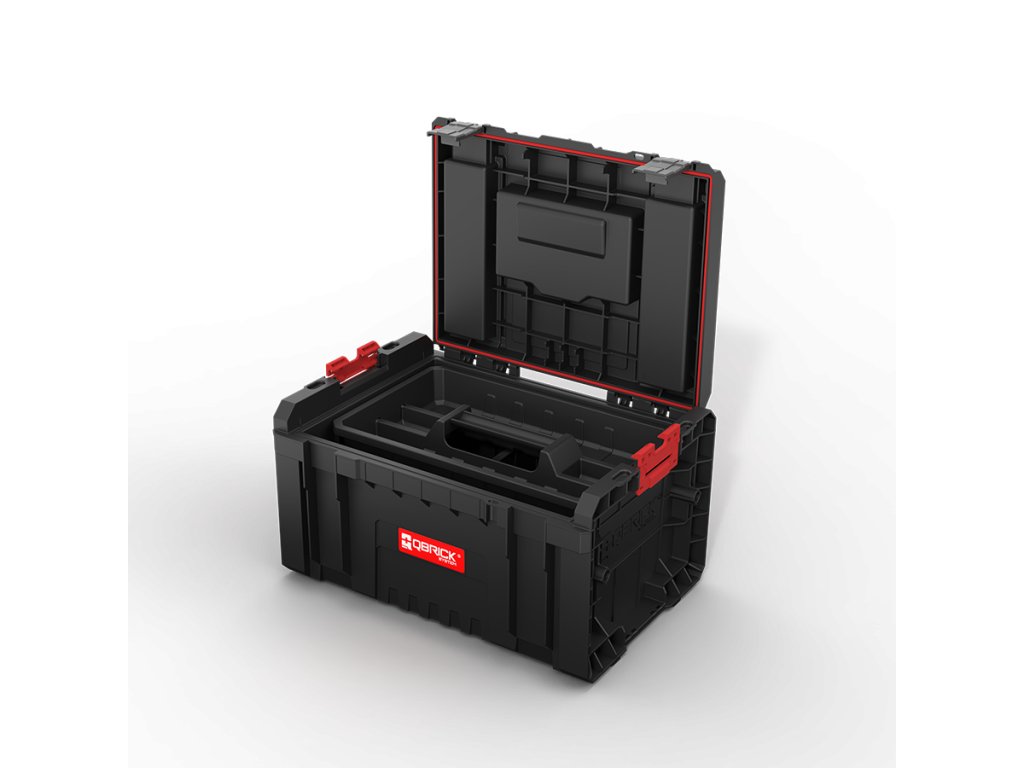 Qbrick System PRO Toolbox Profi je priestranná, modulárna skrinka na náradie, ktorá už v štandardnej výbave ponúka množstvo funkcií: flexibilné tesnenie zabudované do veka pre vysokú odolnosť proti prachu a vode, 3 nastaviteľné prepážky, priestranný zásobník a bočné konektory a predné upevňovacie prvky zo superpevného polyamidu .