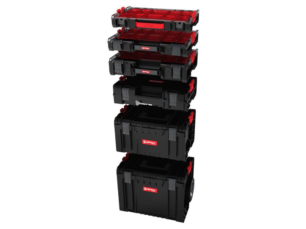 - kompatibilný - systém Qbrick System PRO umožňuje kombinovanie kufrov na náradie, vozíkov a úložných systémov