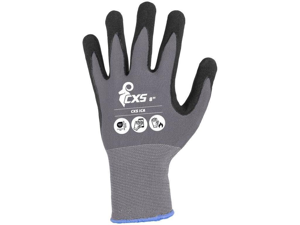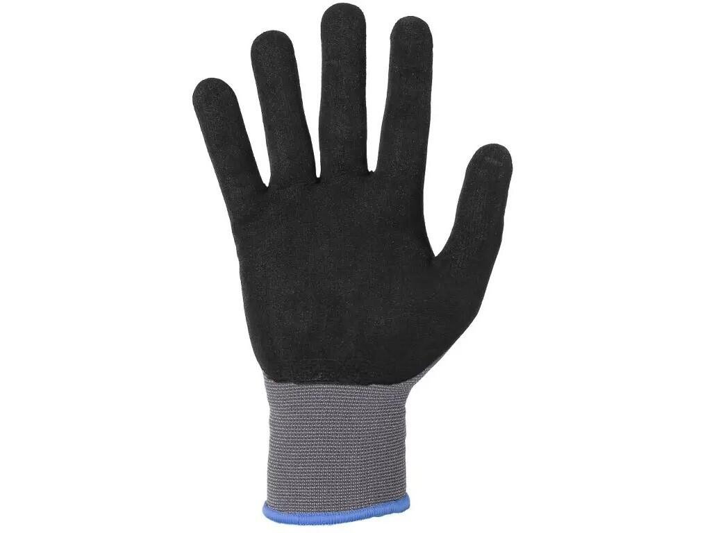 Bezšvové rukavice z pružného nylonového úpletu s dlaňami a prstami povrstvenými zmesou penového nitrilu a polyuretánu na vodnej báze s pieskovou úpravou pre lepší úchop, ochrana proti kontaktnému teplu do 100 ° C, pružná manžeta. Balené s blistrom. Odporúčané aplikácie: automobilový priemysel, logistika, skladovanie, práca s horúcimi predmetmi do 100 ° C, hobby, práca s klzkými predmetmi, záhrada, stavebníctvo, komunálne služby, montáž a balenie malých súčiastok.Dodatočné parametre
