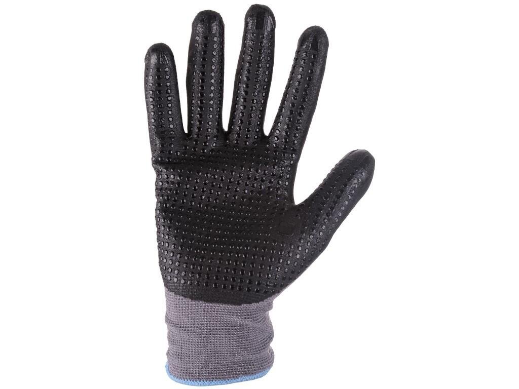 Bezšvové rukavice z jemného zmesového úpletu, dlaň a prsty povrstvené nitrilovou penou s priedušnou úpravou MICROFOAM a nitrilovými terčíkmi pre lepší úchop. Odporúčané aplikácie: automobilový priemysel, logistika, skladovanie, hobby, práca s klzkými predmetmi, záhrada, stavebníctvo, komunálne služby, montáž a balenie malých súčiastok.Dodatočné parametre