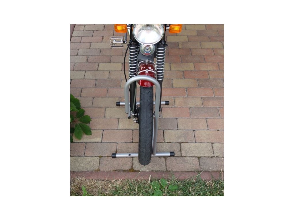 Stojan na bezpečný prevoz motocyklov, určený najmä na použitie na prívesných vozíkoch. Motocykel je nutné ďalej zaistiť vhodnými upínacími pásmi (kurty). Konštrukcia je z oceľových guľatín s povrchovou úpravou komaxit. Guľatiny sú zakončené plastovými záslepkami. Oblúky sú pevne privarené k základovému rámu a určené pre pneumatiky so šírkou až do 120 mm.