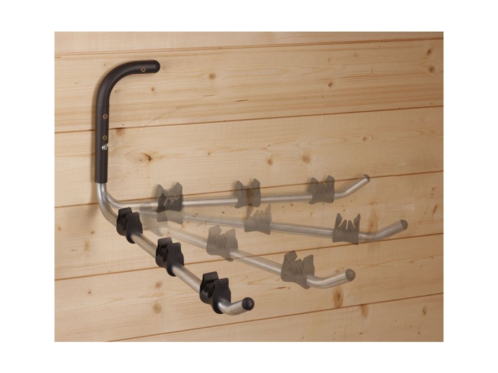 Sklopné nástenné držiaky na zavesenie až 3 bicyklov alebo iného vybavenia (autobox, čln, pneumatiky). Pri nepoužívaní ich možno jednoducho sklopiť ku stene a šetria tak miesto.