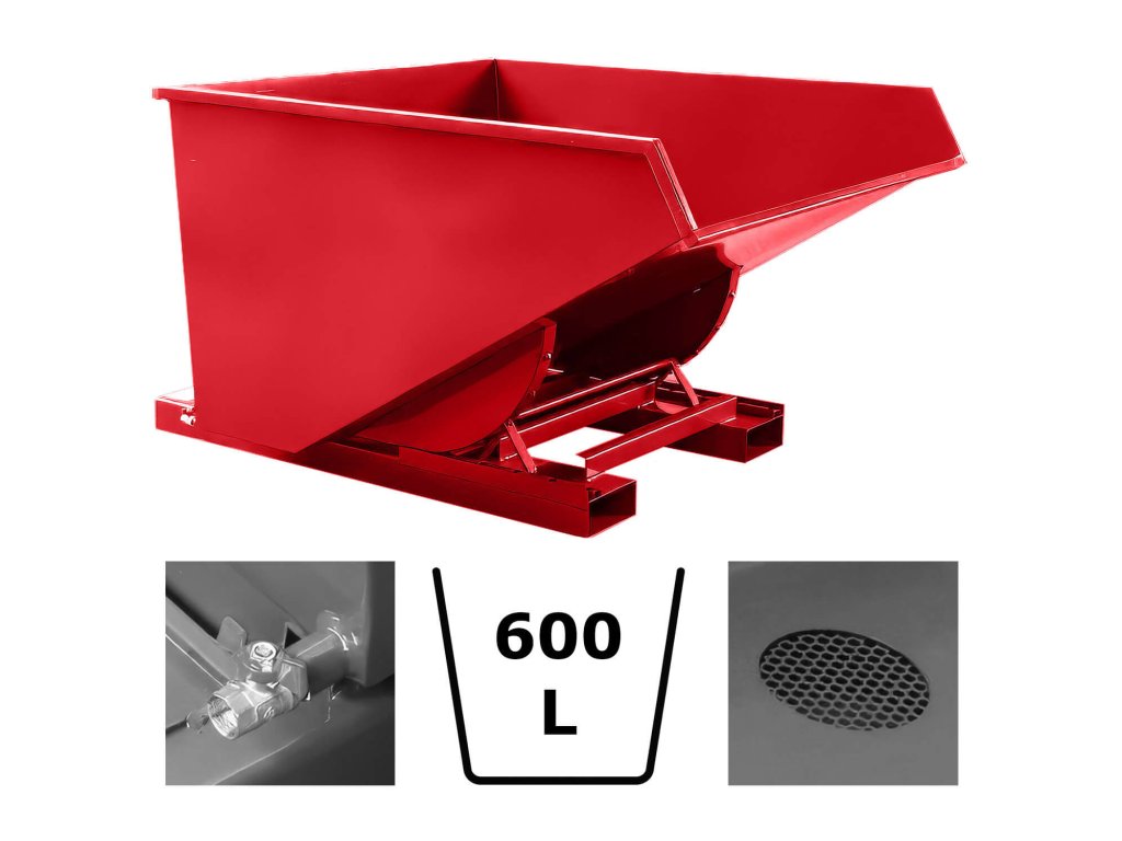 Výklopný kontajner (prepravník) 600 litrov, s výpustným kohútikom, červená