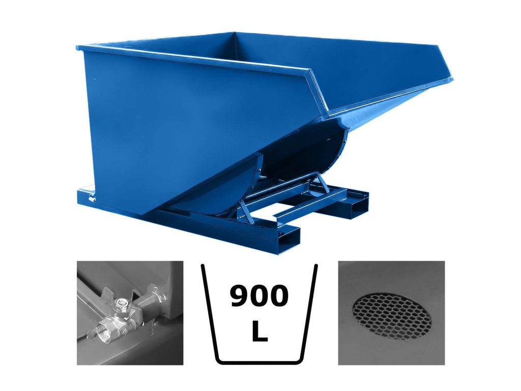 Výklopný kontajner (prepravník) 900 litrov, s výpustným kohútikom, modrá
