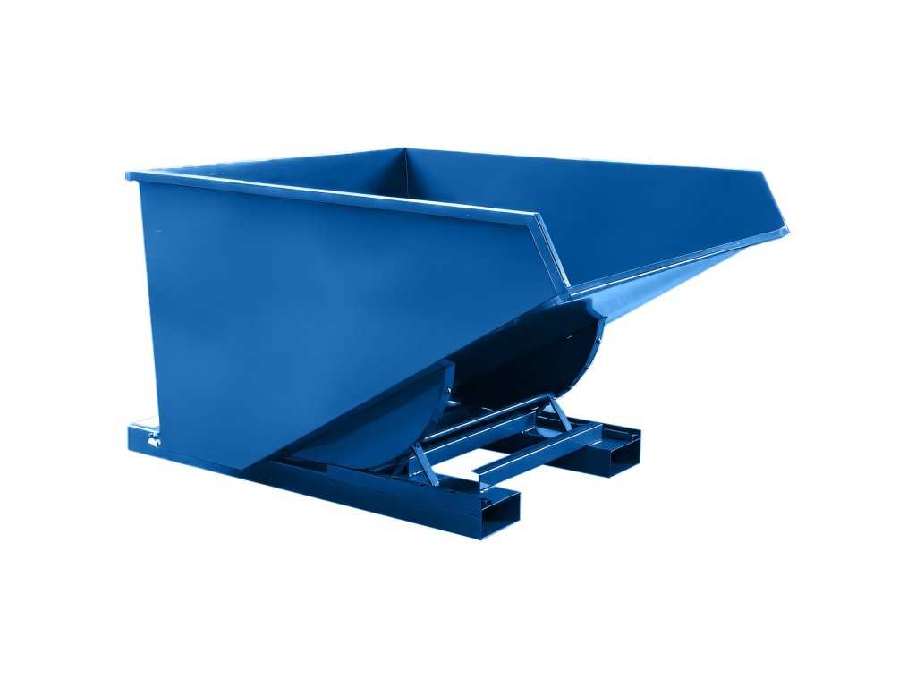Zvarený z plechu hrúbky 3 mm so zosilneným okrajom po obvode kontajnera. Robustný výklopný mechanizmus, ktorý umožňuje vyklopenie z miesta vodiča vysokozdvižného vozíka pomocou oceľového lanka, po vyklopení sa prázdna vaňa vráti do pôvodnej polohy a automaticky sa zaistí. Kontajner musí byť pri vyklápaní z vysokozdvižného vozíka zaistený reťazou proti nechcenému skĺznutiu z vidlíc vozíka. Reťaz aj oceľové lanko sú súčasťou dodávky. Vrátane vreciek pre vidlice vysokozdvižných vozíkov.