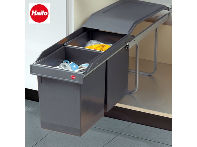Vstavaný odpadkový kôš, Hailo AS Tandem 15/15, tmavo sivý